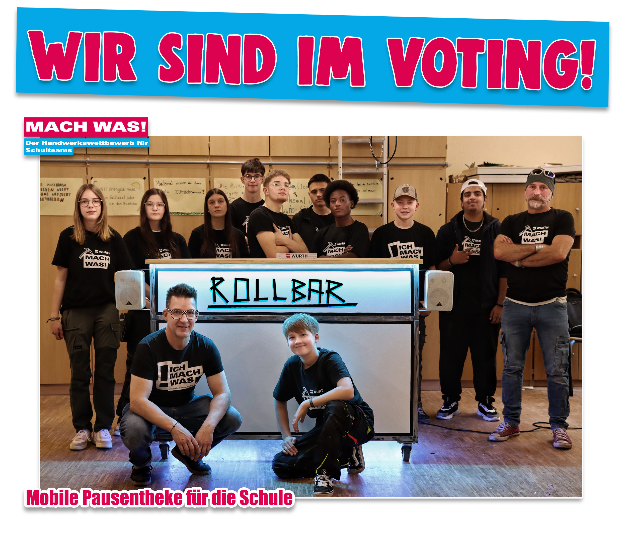Mit viel Engagement, Kreativität und Teamgeist hat die Klasse 9a der Wasgauschule Realschule plus Hauenstein im Rahmen des Würth Wettbewerbs „Mach was!“ 2026 ein ganz besonderes Projekt umgesetzt: die „Rollbar“ – eine mobile Theke von Schülern für Schüler.