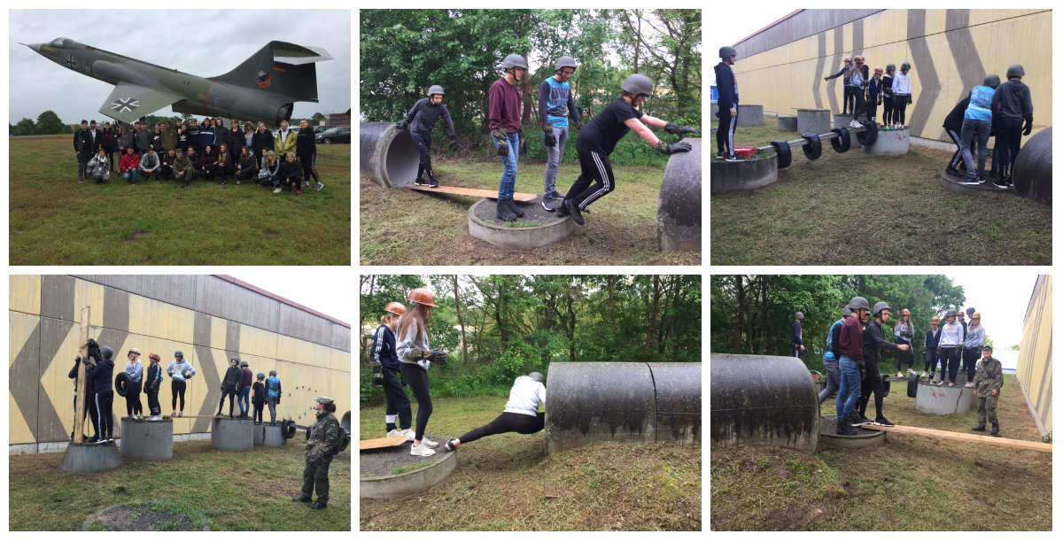 Im Rahmen der Berufsorientierung waren die 10.Klassen der Wasgauschule zusammen mit den begleitenden Lehrkräften Franz Breiner und Marc Faust in der Südpfalz-Kaserne der Bundeswehr in Germersheim zu Gast. Unter professioneller Leitung der Jugendoffizierin, Hauptmann Vicky Prokisch, konnten sich die Schülerinnen und Schüler in verschiedenen Gruppen in Teamfähigkeit, sportlichem Wettkampf und Überlebenstraining in der Natur beweisen.