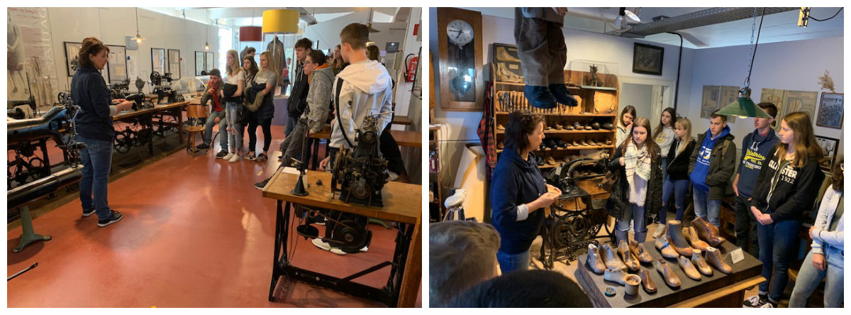 Im Rahmen eines außerschulischen Unterrichtsgangs besuchten die Klassen 9c und 10 zusammen mit den begleitenden Lehrern Martin Paulus und Franz Breiner das Deutsche Schuhmuseum in Hauenstein. Im Rahmen einer imposanten Führung durch Frau Memmer konnte die Geschichte der Schuhindustrie im Allgemeinen und für Hauenstein im Speziellen den Schülern hautnah vermittelt werden. Gerade die Arbeitsbedingungen und der Lärm der Maschinen führten bei vielen zum Nachdenken. In freier Erkundung interessierten die Schüler vor allem die zahlreichen Prominentenschuhe und die Zeitreise durch die Bundesrepublik Deutschland, die durch viele Exponate sehr anschaulich dargestellt ist.