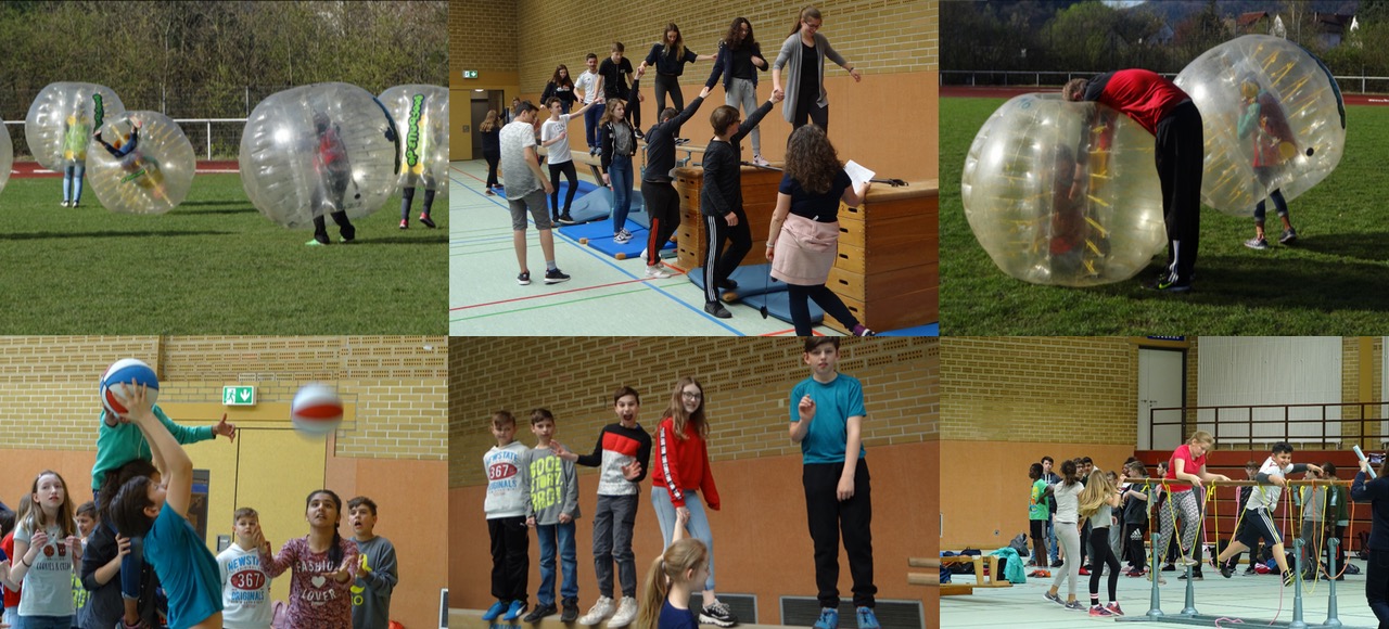 Einer der Höhepunkte war sicherlich die Station „Big-Ball“, bei der die Schüler in großen Luftbällen steckend, Fußball spielen durften. Hier landete der eine oder andere wie ein Käfer auf dem Rücken und es machte einfach nur Spaß.
