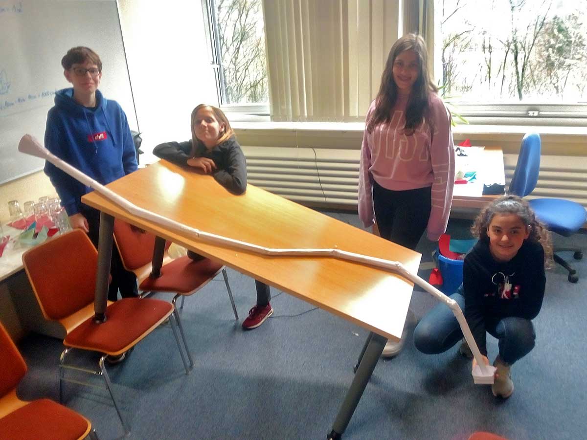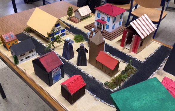 Die Schüler gestalteten in Kleingruppen Häuser aus verschiedenen Materialien, die verschiedene Grundrechte symbolisieren sollen. So bauten Tjark und Johannes ein Gerichtsgebäude, um zu demonstrieren, dass jeder Mensch vor dem Gesetz gleich sei. Die Boutique von Pauline und Angelina soll zeigen, dass jeder Mensch das Recht auf Kleidung habe. Die Stadt der Menschrechte der 10 a beinhaltet weiter eine Schule (Recht auf Bildung), Kirchen (Recht auf Glauben) und viele Wohngebäude (Recht auf Wohnen und Freiheit).