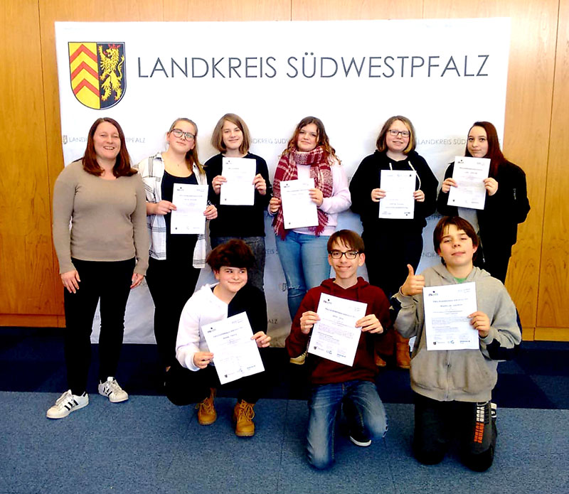 Am Ende der Schulung überreichte der 1. Kreisbeigeordnete Peter Spitzer den Schülerinnen und Schülern ein Zertifikat der BZgA. Von der Wasgauschule Hauenstein haben folgende Schüler und Schülerinnen die Schulung erfolgreich abgeschlossen: