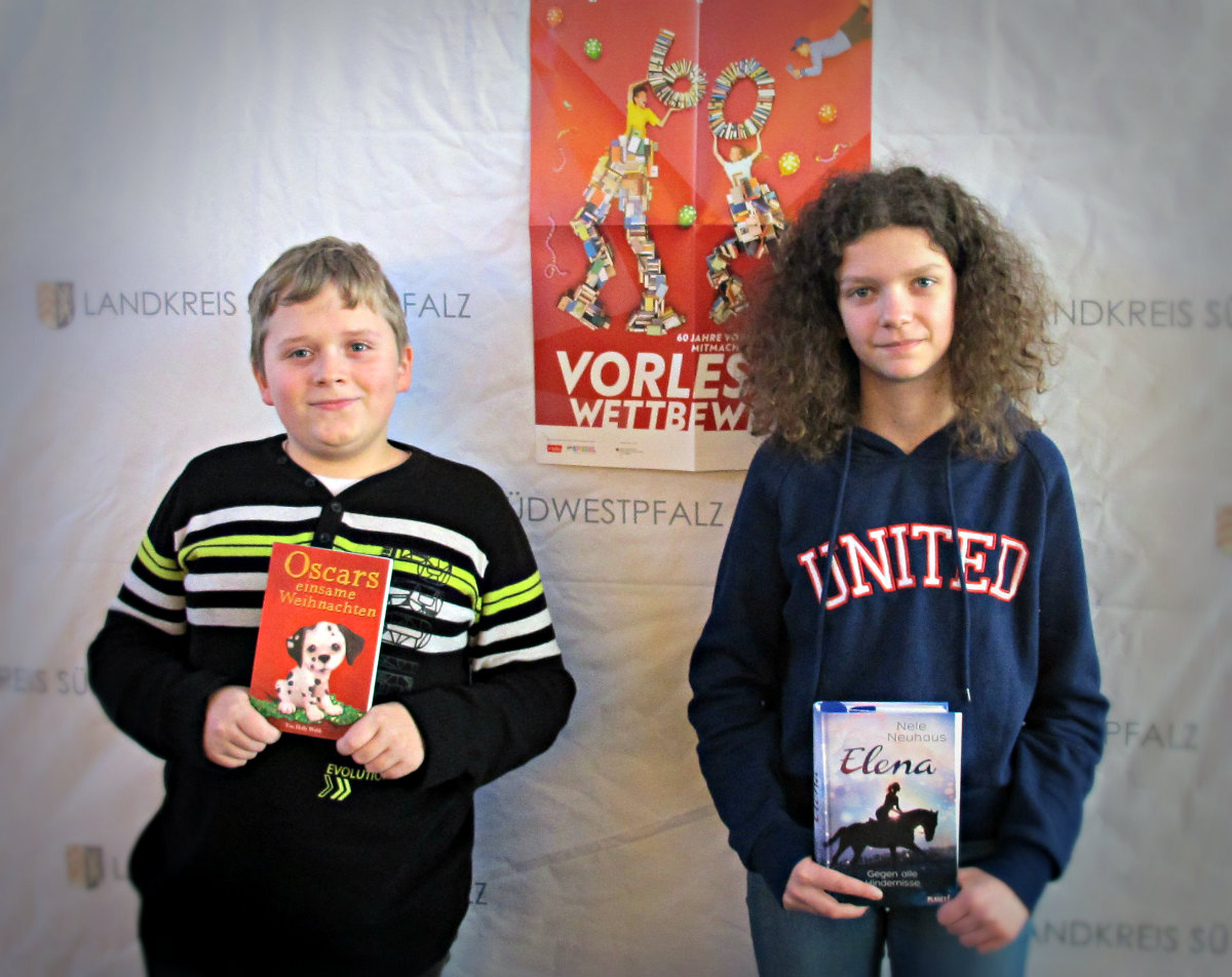 Justin und Sophia stellten ihr Können souverän unter Beweis, indem die ihre Bücher zuerst vorstellten und im Anschluss daran fehlerfrei und sinngemäß betont vorlasen.