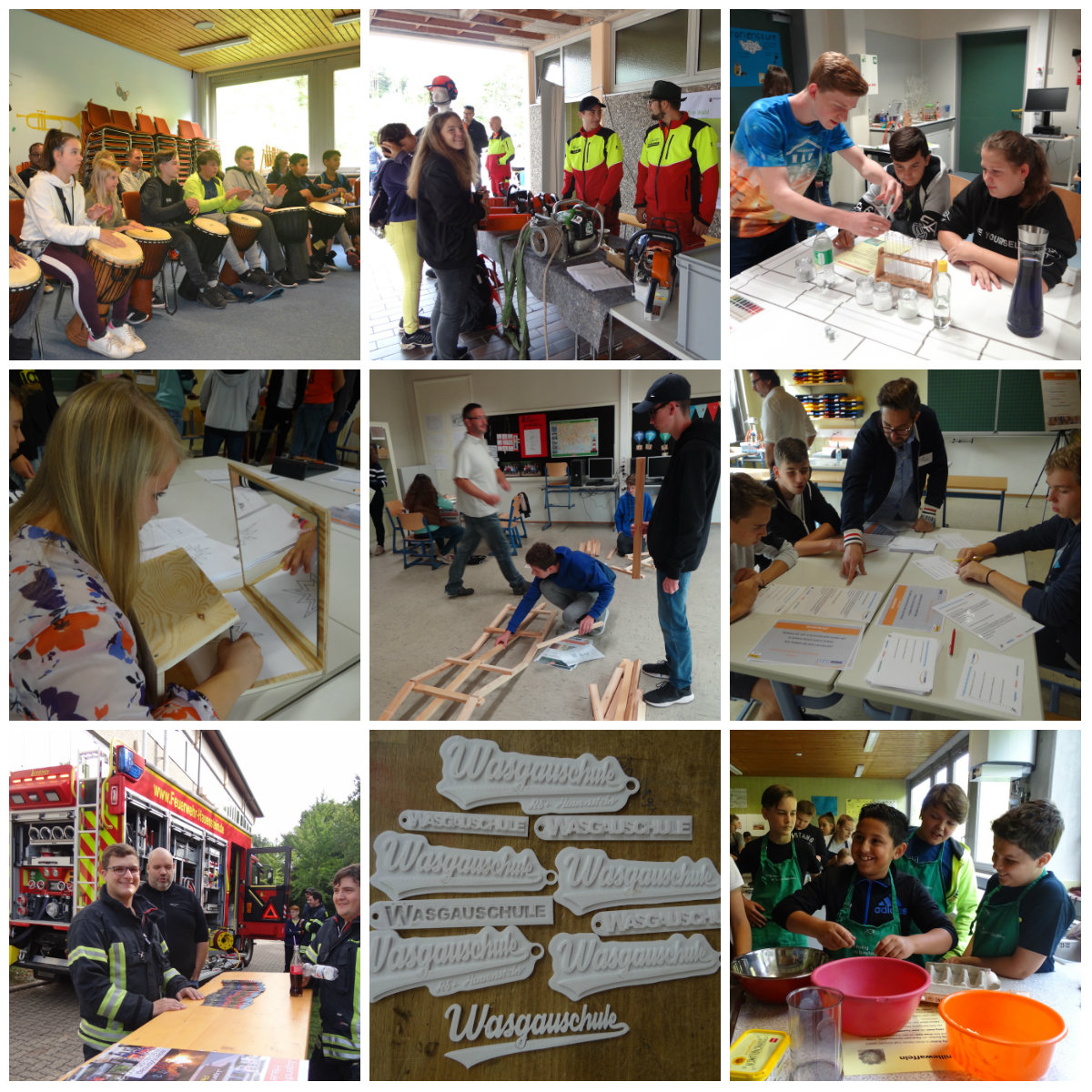 In einer Mischung zwischen Mitmachunterricht für Schüler und Eltern der Realschule plus und einem Berufsorientierungs-Parcours für die höheren Klassen war die gesamte Schulgemeinschaft auf den Beinen. In vielen anschaulichen und praktischen Stationen wechselten Schüler der 5. Klasse bis zur 7. Klasse mit ihren Eltern und Besuchern sowie den Kindern, die auf der Suche nach der richtigen weiterführenden Schule sind, durch das Schulhaus. Gleichzeitig überzeugten sich die Schüler der 8. bis 10. Klassen sowie Gäste und Freunde der Wasgauschule von der Kompetenz des Berufsorientierungsprogramms.
