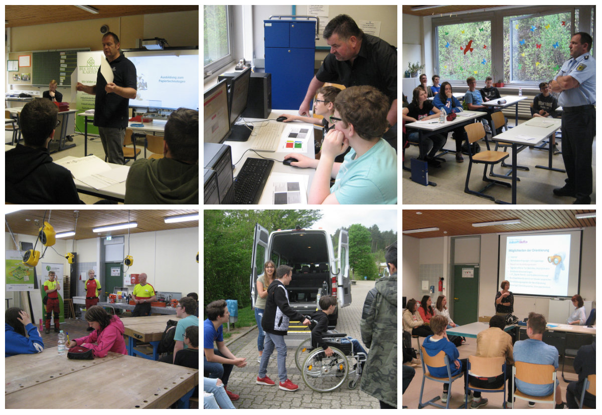 Zusammen mit unseren Partnern in der Berufsorientierung, der Industrie- und Handelskammer und der Bundesagentur für Arbeit, sind Vertreter der Betriebe in der Region unserer Einladung gefolgt und haben in eindrücklichen Vorträgen und praktischen Vorführungen mit berufstypischen Geräten den Schülerinnen und Schülern ihren Arbeitsbereich praxisnah vorgestellt.