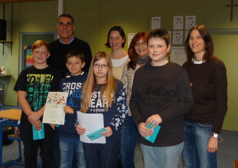 Als Anerkennung für ihre besondere Leistung erhielten die vier erfolgreichen Klassensieger durch den Schulleiter Herrn M. Schlick einen Geschenkgutschein vom Förderverein der Wasgauschule Hauenstein.
