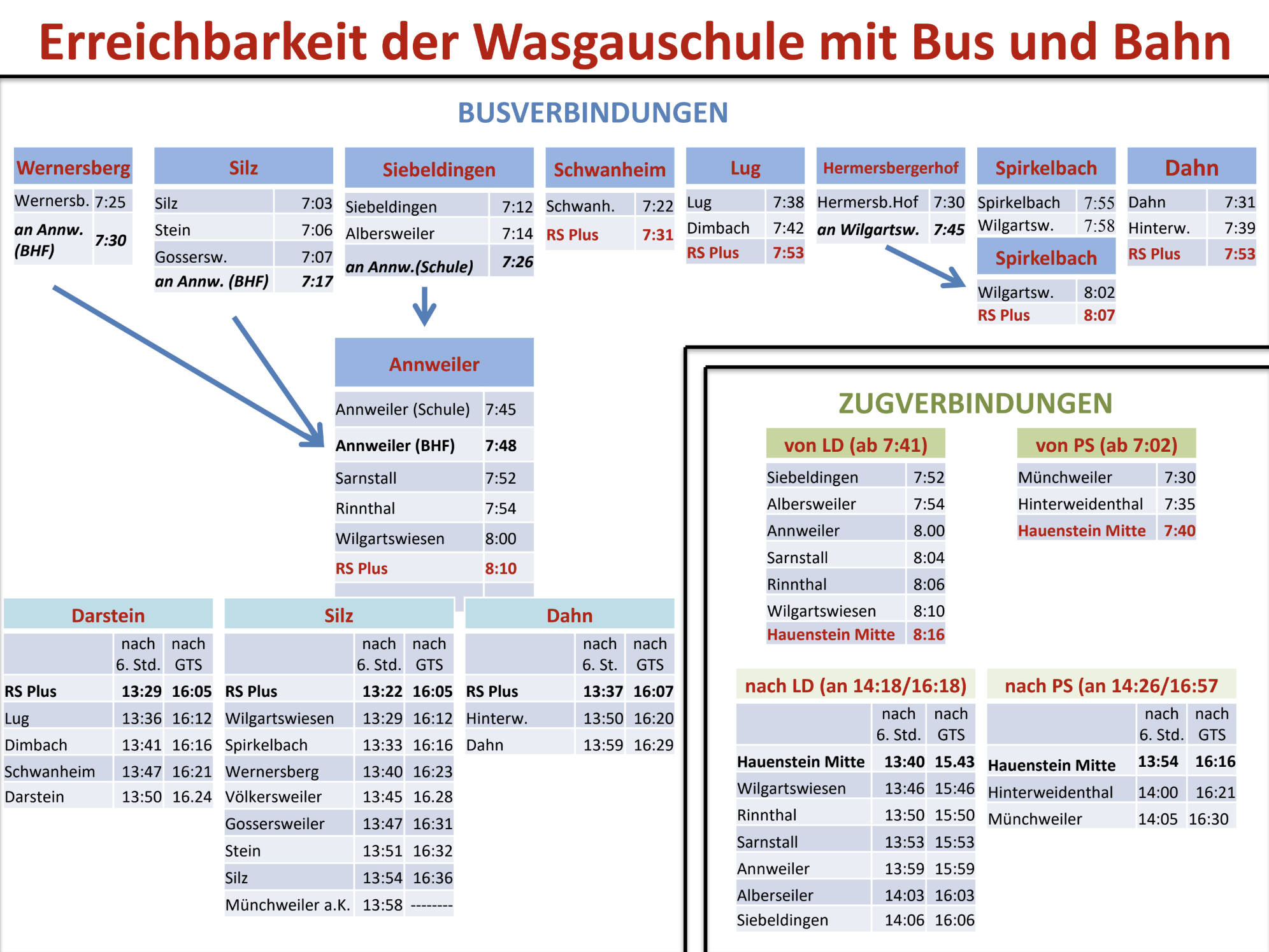 Unsere Schülerinnen und Schüler kommen mit Bus und Bahn aus Münchweiler, Siebeldingen, Pirmasens, Landau, Dahn, Lug...und natürlich auch zu Fuß aus Hauenstein!