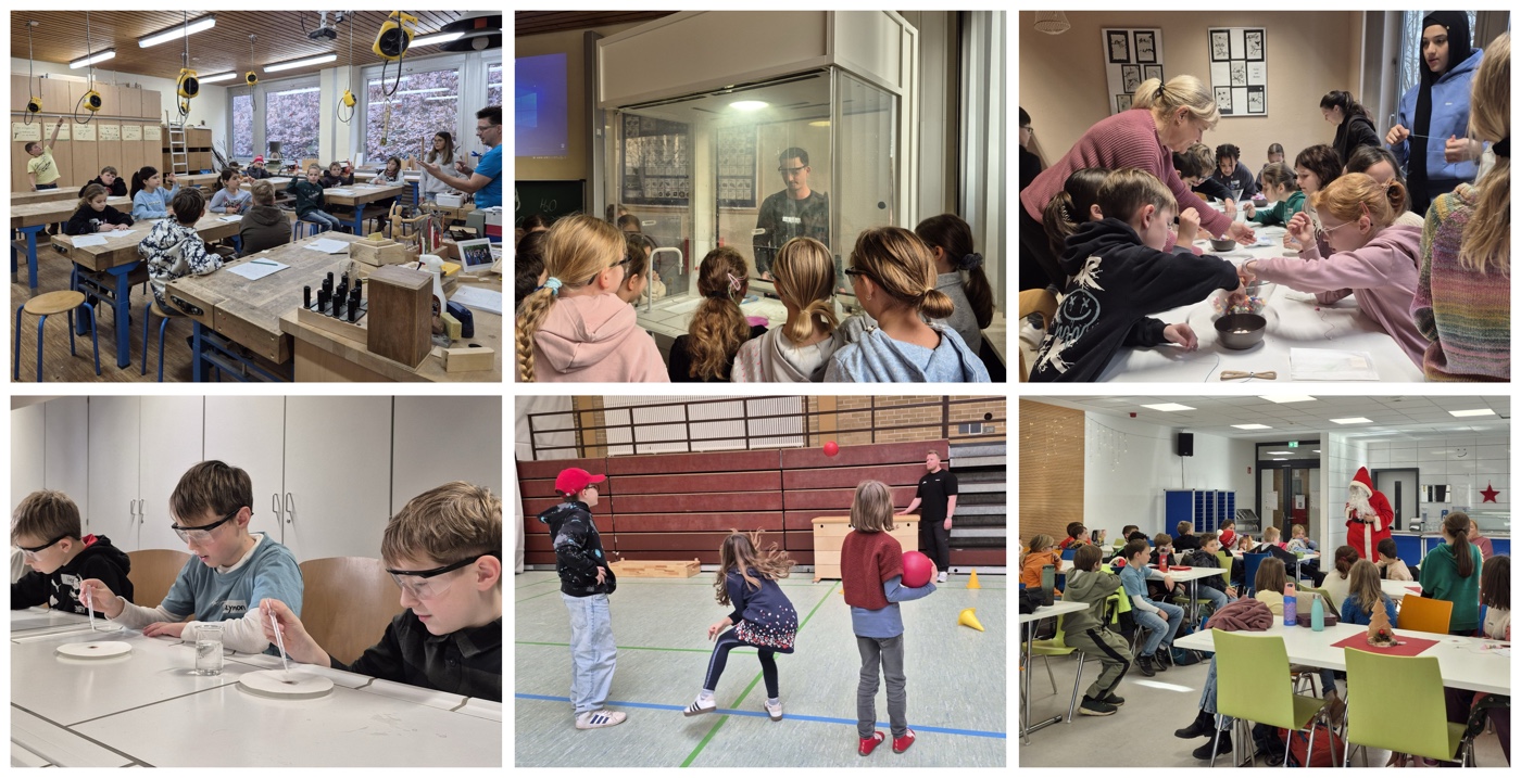 An verschiedenen Stationen lernten die Kinder unsere Schule kennen: In der Chemie sorgten spannende Experimente für Staunen, während in der Technik gebaut und konstruiert wurde. Die Station Französisch ermöglichte erste Einblicke in die Sprache, und in der Bibliothek stand die Freude am Lesen im Mittelpunkt. Neu war in diesem Jahr die Station Sport, bei der sich die Kinder mit Begeisterung austoben konnten.