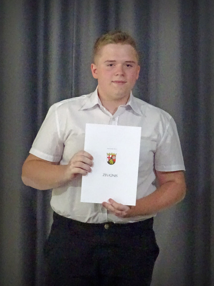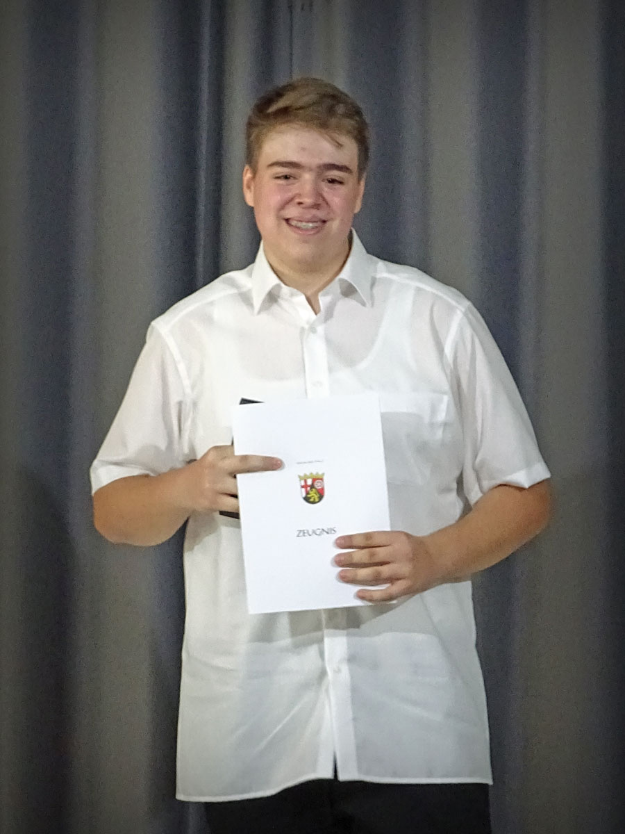 Preis der Kreisverwaltung Südwestpfalz für den Jahrgangsbesten im Bildungsgang der Sekundarstufe I: Phillip Scherdel 10c