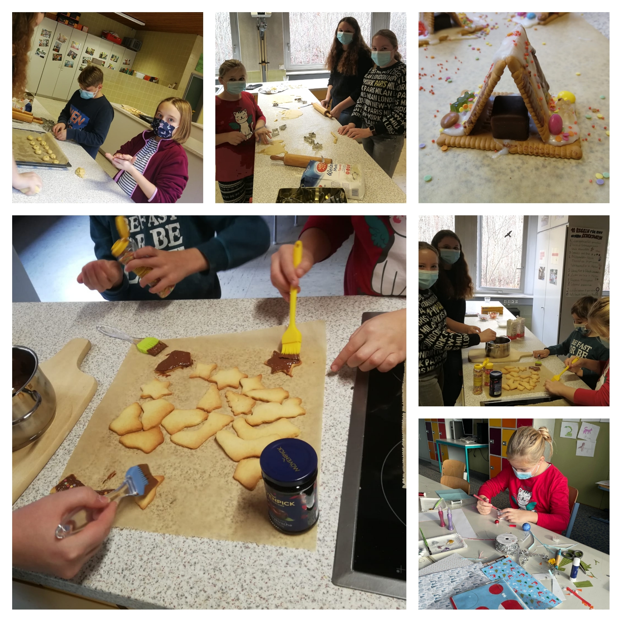 Weihnachtliche wurde es am vergangenen Samstag bei unserer Mitmachaktion „Backen und Basteln im Advent“ statt, an der interessierte Viertklässler der Grundschulen Gossersweiler-Stein und Hinterweidenthal teilnehmen konnten. Von Weihnachtskarten und Christbaumschmuck bis hin zu Kekshäusern und Buttergebäck war alles geboten. Beim Backen und Basteln wurden die Grundschüler liebevoll von unseren Neuntklässlerinnen Tamia, Djamila, Dorinja und Neomé unterstützt.